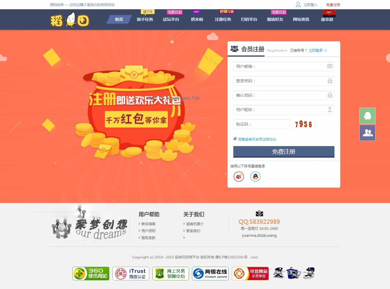 仿欢乐赚 百万盟 聚享游 游戏试玩 打码平台源码