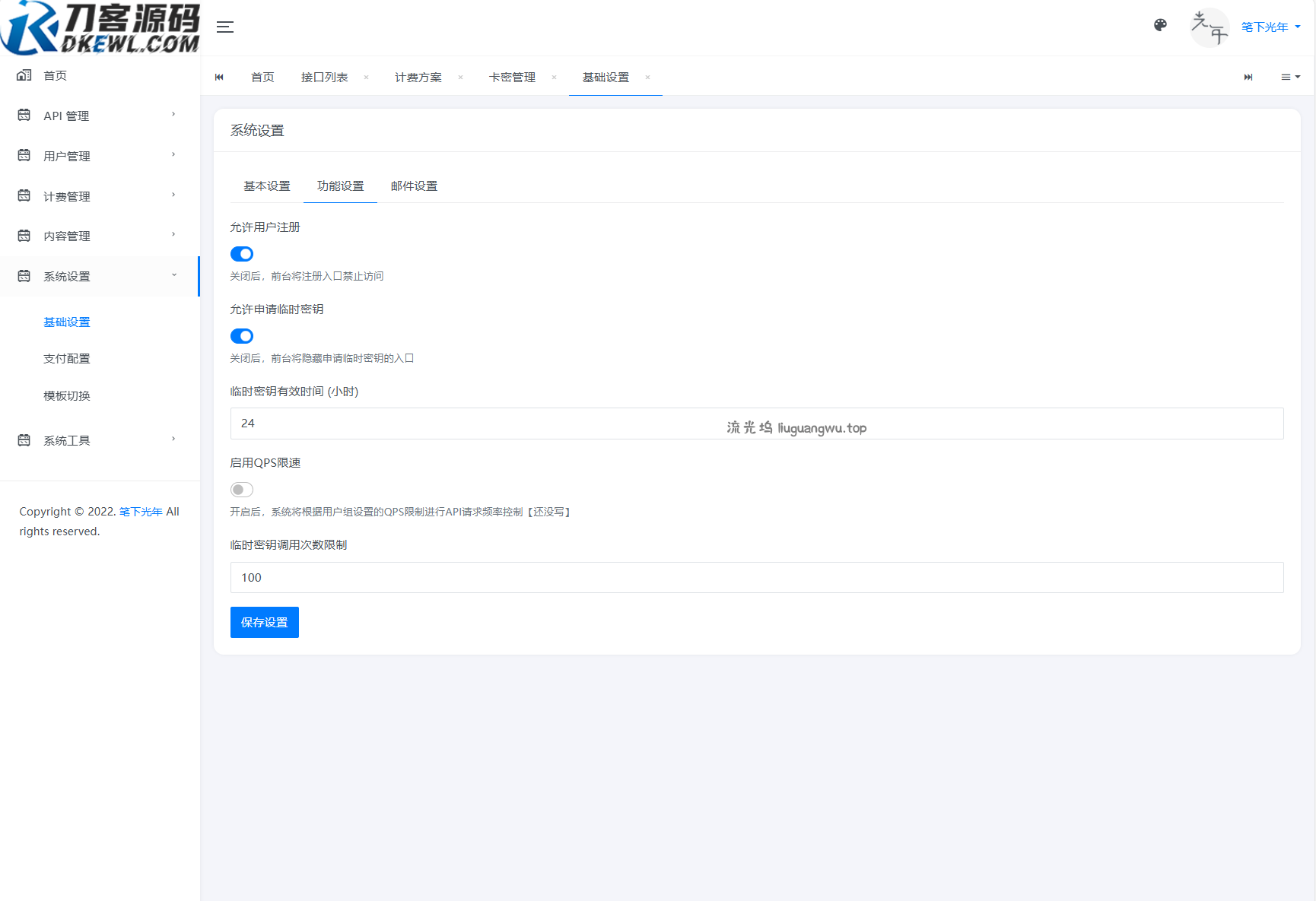 全新二开版刀客API管理系统源码 API计费 全开源