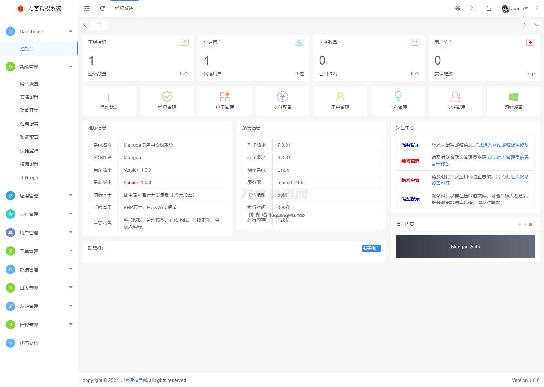 Mangoa-Auth/芒果自助多应用企业级网站授权系统源码拥有盗版入库、远程更新等功能